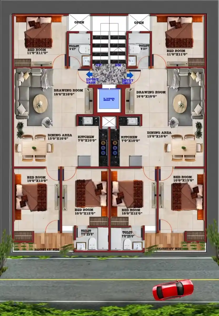 | 3 BHK + 3T | 1600 Sq.Ft |