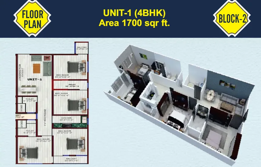 | 4 BHK | 1700 Sq.Ft |
